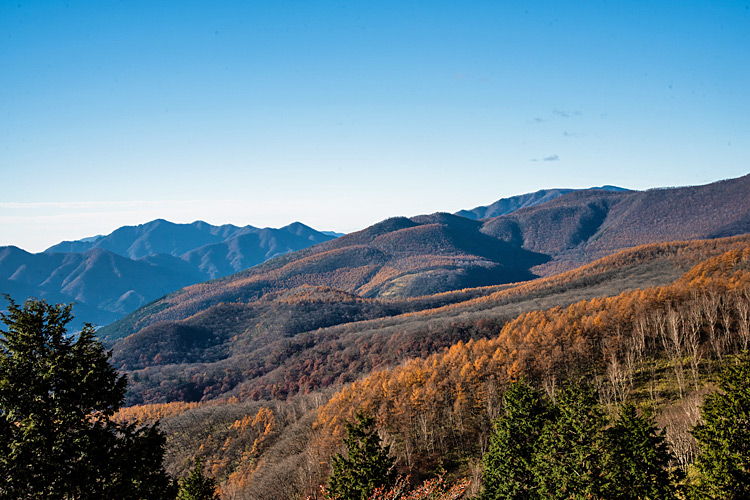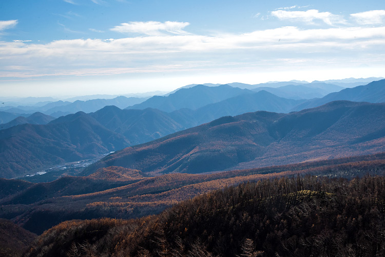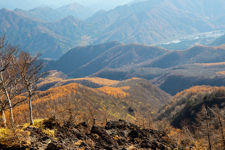 ![]() 手前、なだらかにモッコ平 その向こうにキノミ平 見辛いけど奥のピークは丹勢山か? |